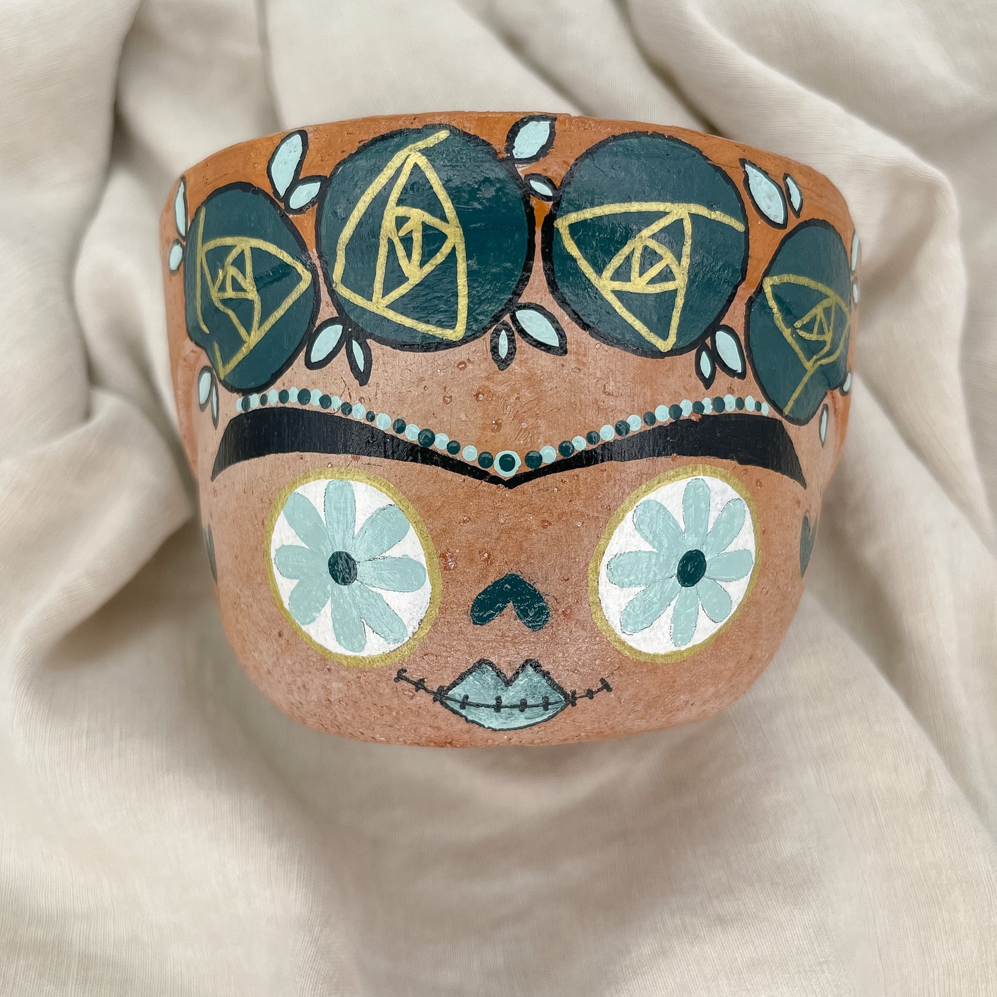 Ogni pezzo porta con sé un richiamo all’arte delle Calaveras, con un tocco personale. Ispirato dalle iconiche raffigurazioni di Posada e reinterpretato nel mio stile, questo vaso non è solo un elemento d’arredo, ma un piccolo simbolo di memoria e colore per la tua casa.